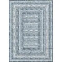Navy Blue And Sky Blue Abstract Washable Indoor Outdoor Area Rug