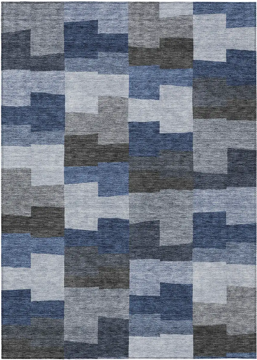 Navy Blue And Sky Blue Geometric Washable Indoor Outdoor Area Rug