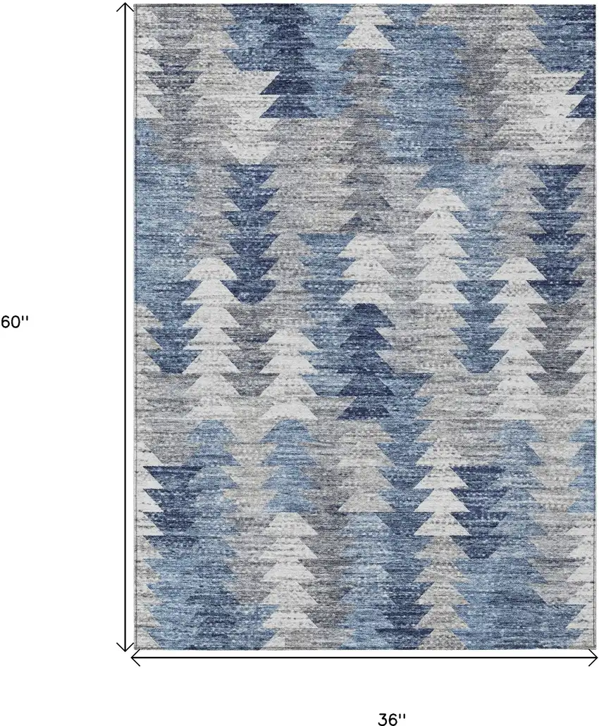 Navy Blue And Sky Blue Geometric Washable Indoor Outdoor Area Rug