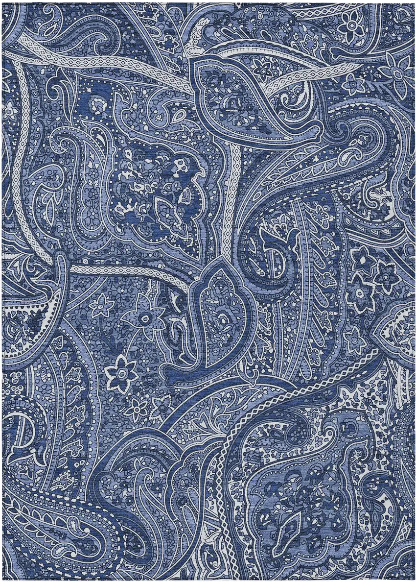 Navy Blue And Sky Blue Paisley Washable Indoor Outdoor Area Rug