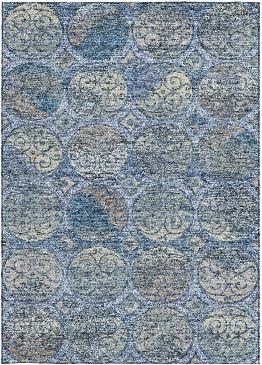Navy Blue And Sky Blue Trellis Washable Indoor Outdoor Area Rug