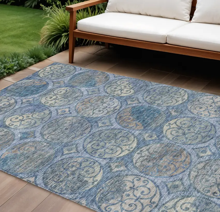Add great coloration and comfortable texture to your space with this 10-foot x 14-foot navy blue and sky blue trellis washable indoor outdoor area rug. This rectangle shaped rug features a trellis design that will work well both indoors or out. A classic shape marries with good looking design for your living room, hall, bedroom, porch, patio, or poolside. Ideal for outdoor spaces or high traffic areas with kids and pets, this rug is made from heavy duty polyester that is stain resistant to help repel water, dirt, and stains. Versatile in use, durable, and easy to maintain, this rug is an ideal solution to add a decorative and inviting touch to your indoor or outdoor space. 120-inch h x 168-inch w x 0.19-inch d.