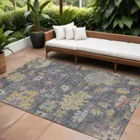Navy Blue Beige And Gray Floral Washable Indoor Outdoor Area Rug