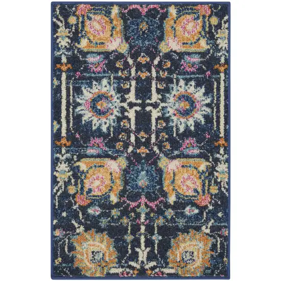 Experience the perfect blend of style and durability with this scatter rug, designed with intricate floral patterns. Its navy blue colour adds a chic and modern touch to the room.