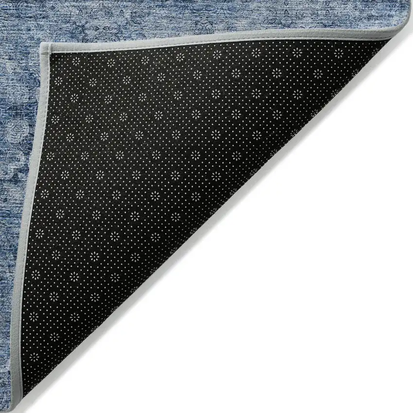 Navy Blue Floral Medallion Washable Non Skid Indoor Outdoor Area Rug