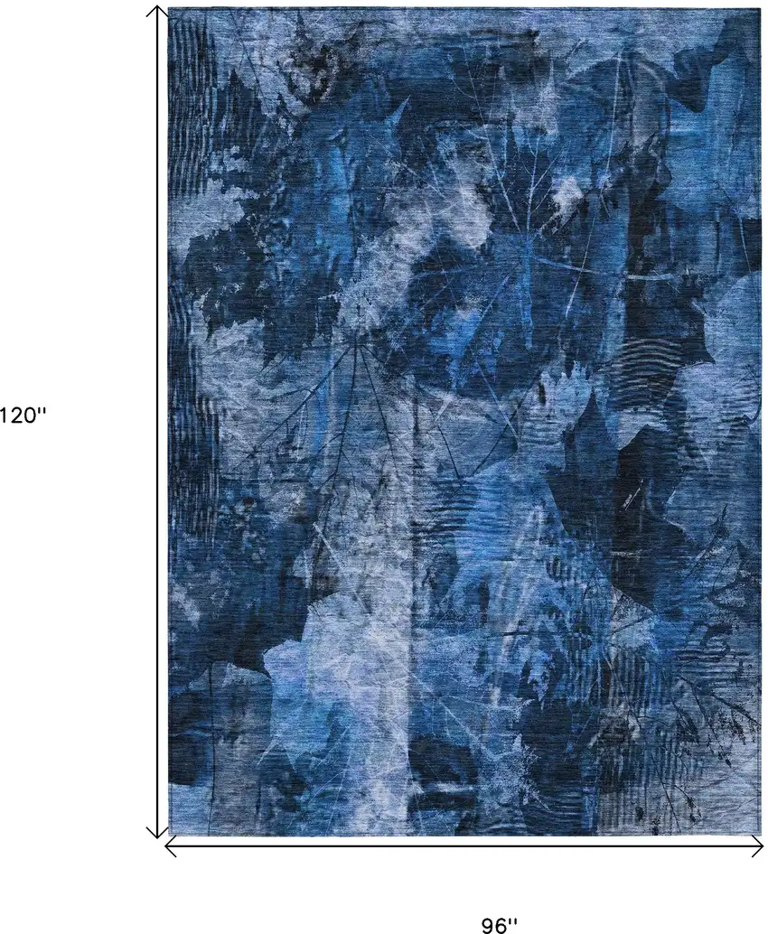 Navy Blue Floral Washable Non Skid Indoor Outdoor Area Rug