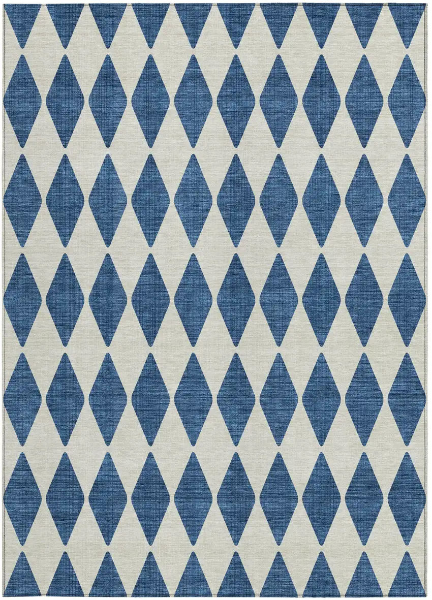 Navy Blue Geometric Washable Indoor Outdoor Area Rug