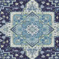 Navy Blue Gray And Black Abstract Washable Indoor Outdoor Area Rug