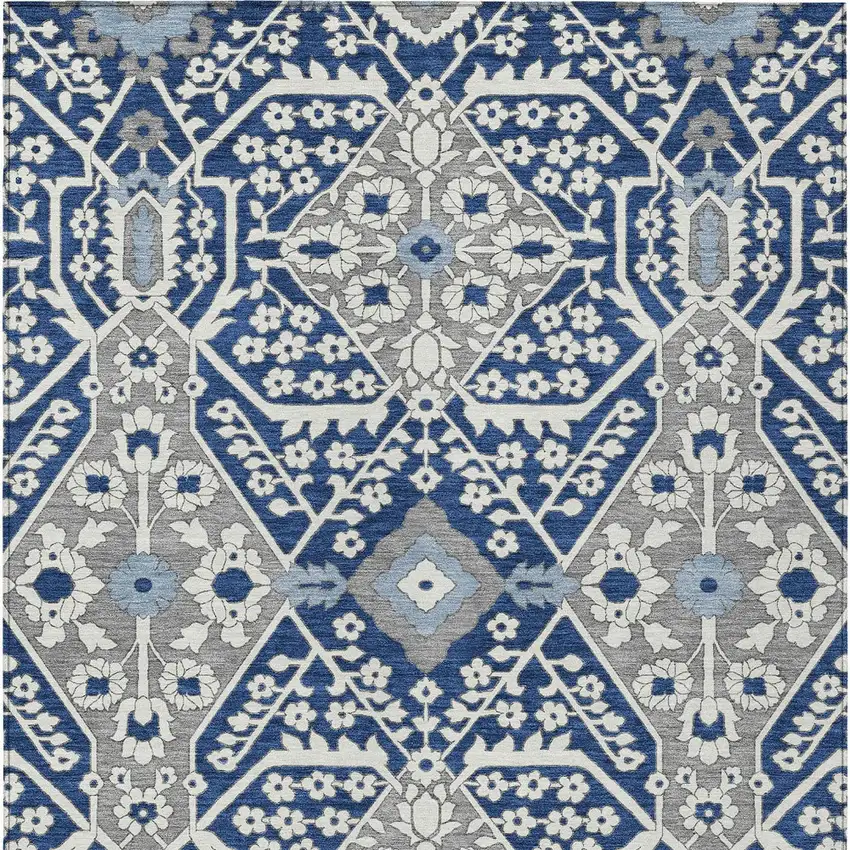 Add great coloration and comfortable texture to your space with this 9-foot x 12-foot navy blue gray and ivory floral washable indoor outdoor area rug. This rectangle shaped rug features a floral design that will work well both indoors or out. A classic shape marries with good looking design for your living room, hall, bedroom, porch, patio, or poolside. Ideal for outdoor spaces or high traffic areas with kids and pets, this rug is made from heavy duty polyester that is stain resistant to help repel water, dirt, and stains. Versatile in use, durable, and easy to maintain, this rug is an ideal solution to add a decorative and inviting touch to your indoor or outdoor space. 108-inch h x 144-inch w x 0.19-inch d.