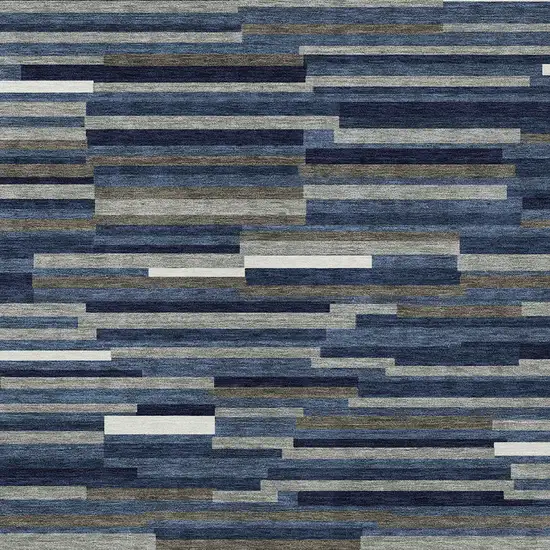 Navy Blue Gray And Ivory Striped Washable Indoor Outdoor Area Rug