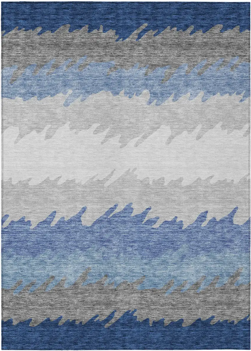 Navy Blue Gray And Silver Striped Washable Indoor Outdoor Area Rug