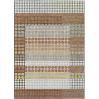 Navy Blue Ivory And Brown Geometric Washable Indoor Outdoor Area Rug