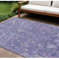 Navy Blue Ivory And Brown Geometric Washable Indoor Outdoor Area Rug