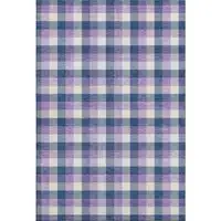 Navy Blue Ivory And Gray Striped Washable Area Rug With UV Protection