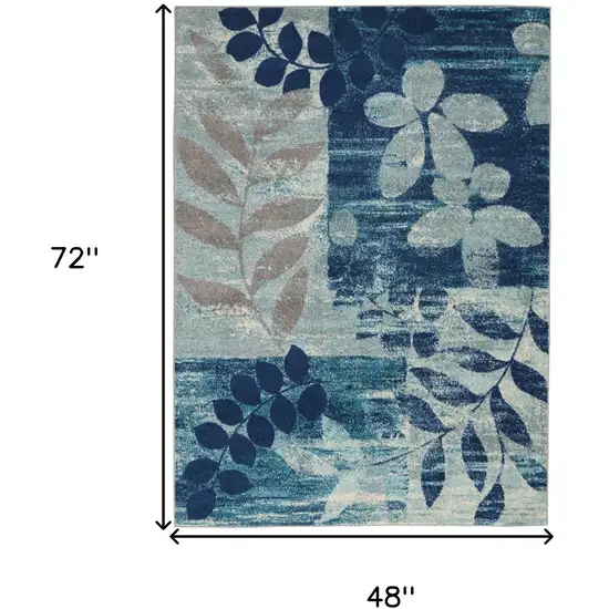 Navy Blue Light Blue and Gray Botanical Leaves Area Rug