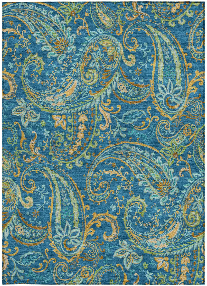 Add great coloration and comfortable texture to your space with this 9-foot x 12-foot navy blue paisley washable stain resistant non skid indoor outdoor area rug. This rectangle shaped rug features a paisley design in navy blue to give it visual interest. A classic shape marries with good looking design for your space ideal for spaces with kids and pets, this rug is stain resistant to help repel stains and spilled liquids. Area rugs help to give warmth and sense of home to your space. 108-inch H x 144-inch W x 0.19-inch D