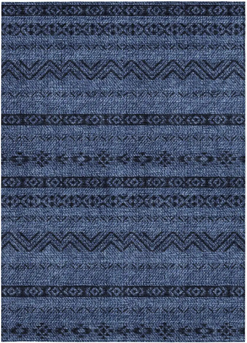 Navy Blue Southwestern Washable Indoor Outdoor Area Rug