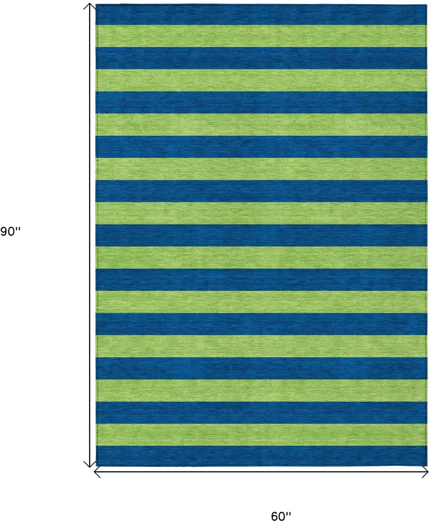 Navy Blue Striped Washable Non Skid Indoor Outdoor Area Rug