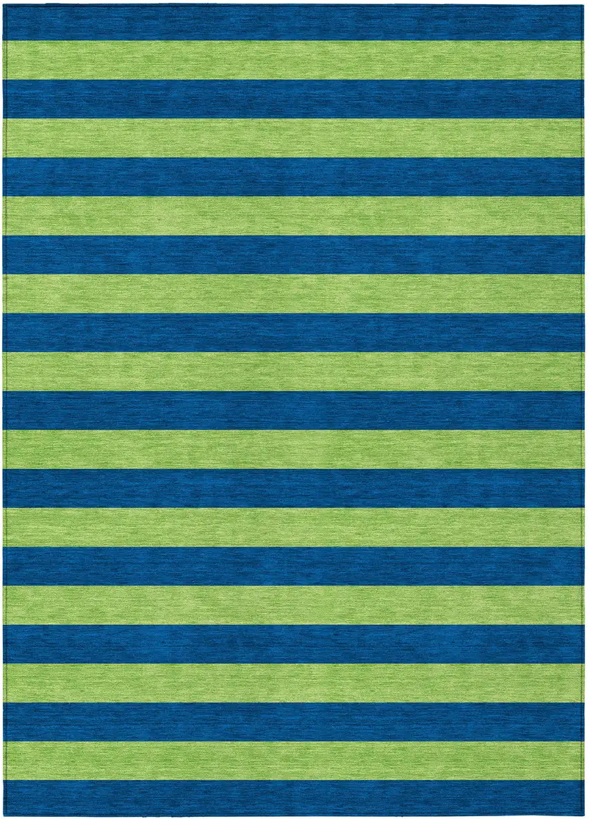 This 10-foot x 14-foot navy blue striped washable stain resistant non skid indoor outdoor area rug, is a great way to add warmth to a room. This rectangle shaped rug features a striped design in navy blue to give it visual interest. A classic shape marries with good looking design for your space ideal for spaces with kids and pets, this rug is stain resistant to help repel stains and spilled liquids. Place this area rug against a hardwood or tile floor and it will enliven your living space with style and sophistication. 120-inch H x 168-inch W x 0.19-inch D