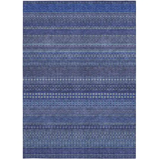 Add some artistry to your room with this 10-foot x 14-foot navy blue striped washable stain resistant non skid indoor outdoor area rug. This rectangle shaped rug features a striped design in navy blue to give it visual interest. A classic shape marries with good looking design for your space ideal for spaces with kids and pets, this rug is stain resistant to help repel stains and spilled liquids. Place this area rug against a hardwood or tile floor and it will enliven your living space with style and sophistication. 120-inch H x 168-inch W x 0.19-inch D