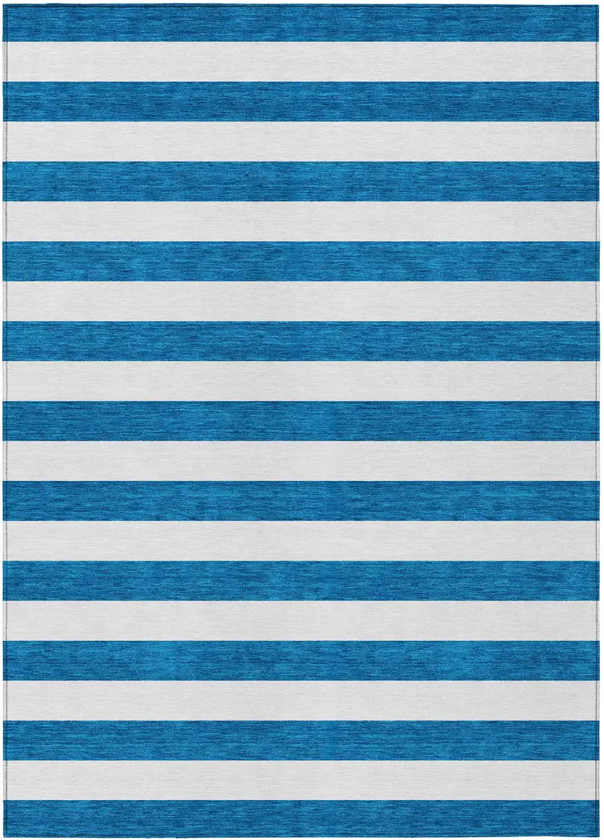Navy Blue Striped Washable Non Skid Indoor Outdoor Area Rug