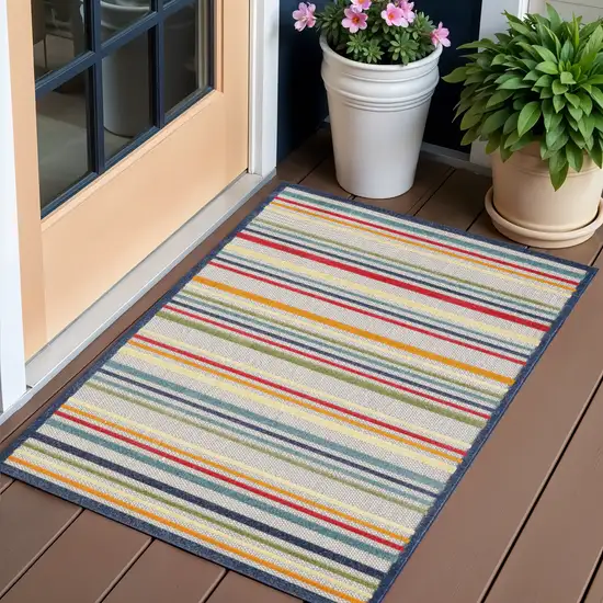 Navy Colorful Striped Indoor Outdoor Area Rug