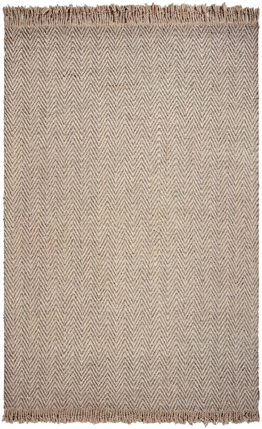 Oatmeal Beige Hand Woven Herringbone With Braided Fringe Indoor Area Rug