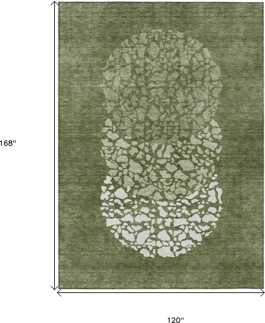 This 10-foot x 14-foot olive green and artichoke green abstract washable indoor outdoor area rug, is a great way to add warmth to a room. This rectangle shaped rug features a abstract design that will work well both indoors or out. A classic shape marries with good looking design for your living room, hall, bedroom, porch, patio, or poolside. Ideal for outdoor spaces or high traffic areas with kids and pets, this rug is made from heavy duty polyester that is stain resistant to help repel water, dirt, and stains. Makes a great way to dress up your patio, porch, or poolside, but also works well as a durable and easy to maintain option in the kitchen, family room, or mudroom. 120-inch h x 168-inch w x 0.19-inch d.