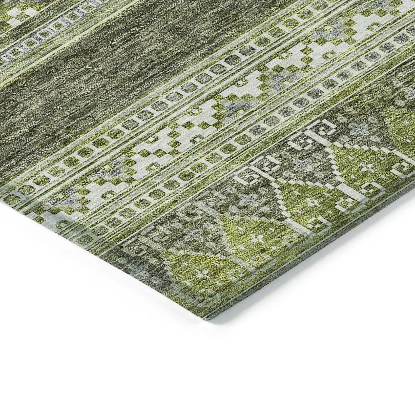 Add great coloration and comfortable texture to your space with this 8-foot x 10-foot olive green and artichoke green southwestern washable indoor outdoor area rug. This rectangle shaped rug features a southwestern design that will work well both indoors or out. A classic shape marries with good looking design for your living room, hall, bedroom, porch, patio, or poolside. Ideal for outdoor spaces or high traffic areas with kids and pets, this rug is made from heavy duty polyester that is stain resistant to help repel water, dirt, and stains. Versatile in use, durable, and easy to maintain, this rug is an ideal solution to add a decorative and inviting touch to your indoor or outdoor space. 96-inch h x 120-inch w x 0.19-inch d.