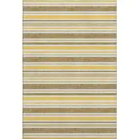 Olive Green And Beige Striped Washable Area Rug With UV Protection