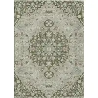 Olive Green And Brown Geometric Washable Indoor Outdoor Area Rug