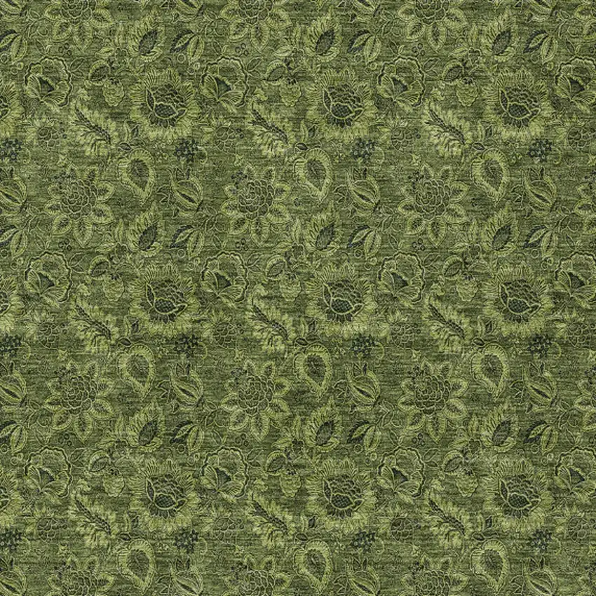Olive Green And Fern Green Floral Washable Indoor Outdoor Area Rug