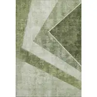 Olive Green And Gold Abstract Washable Area Rug With UV Protection