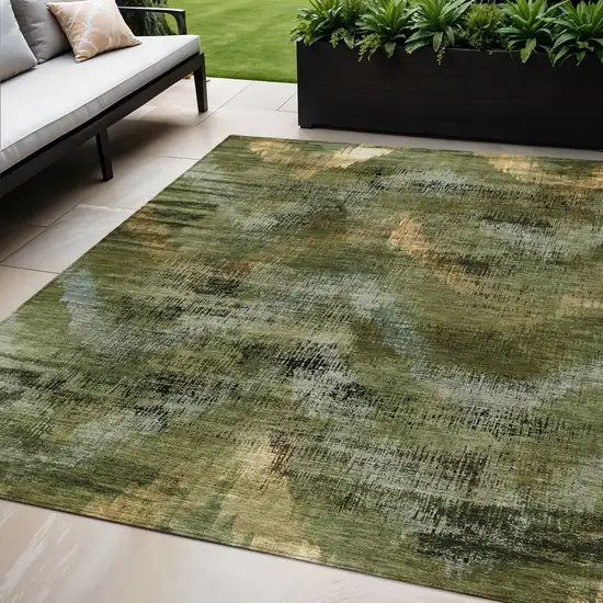 Olive Green And Gold Abstract Washable Indoor Outdoor Area Rug
