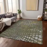 Olive Green And Ivory Abstract Washable Indoor Outdoor Area Rug
