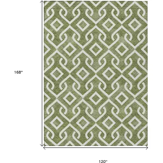 Olive Green And Ivory Geometric Washable Indoor Outdoor Area Rug