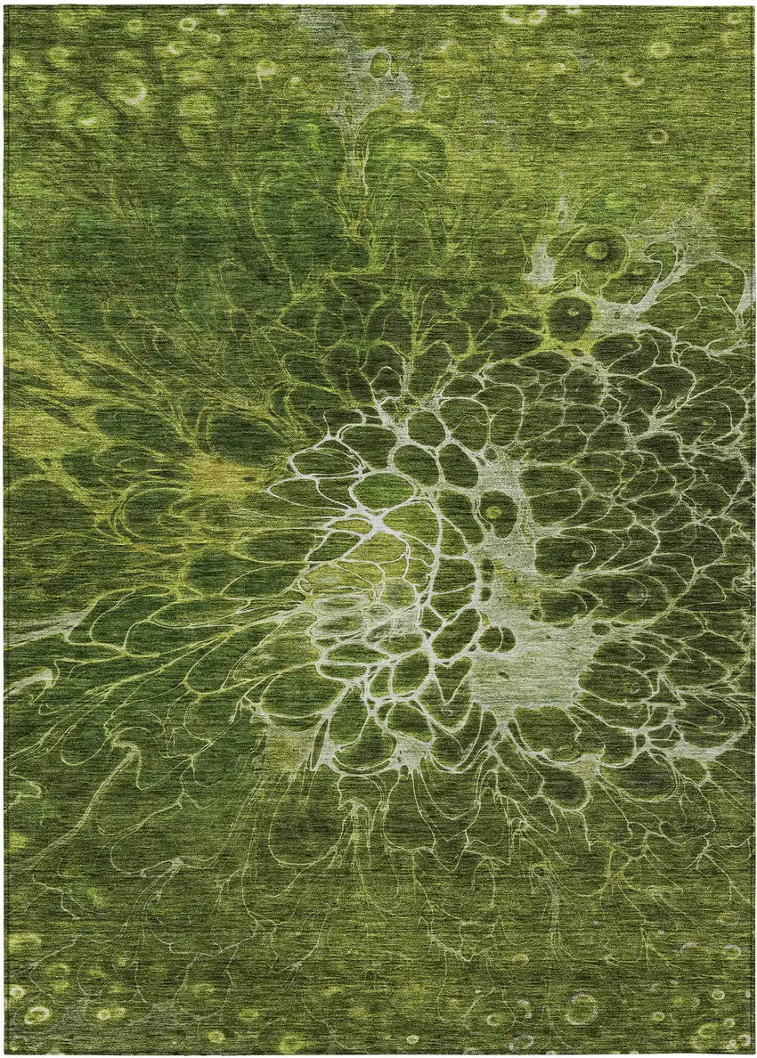 Olive Green And Sage Abstract Washable Indoor Outdoor Area Rug