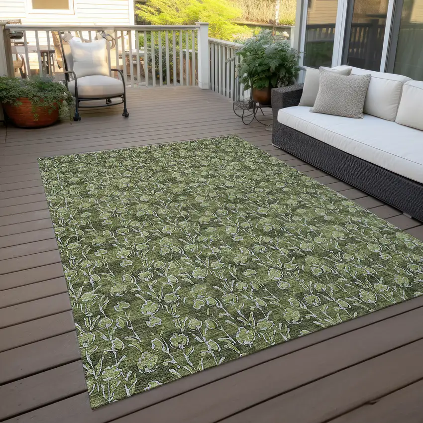 This 9-foot x 12-foot olive green artichoke green and ivory floral washable indoor outdoor area rug, is a great way to add warmth to a room. This rectangle shaped rug features a floral design that will work well both indoors or out. A classic shape marries with good looking design for your living room, hall, bedroom, porch, patio, or poolside. Ideal for outdoor spaces or high traffic areas with kids and pets, this rug is made from heavy duty polyester that is stain resistant to help repel water, dirt, and stains. Makes a great way to dress up your patio, porch, or poolside, but also works well as a durable and easy to maintain option in the kitchen, family room, or mudroom. 108-inch h x 144-inch w x 0.19-inch d.