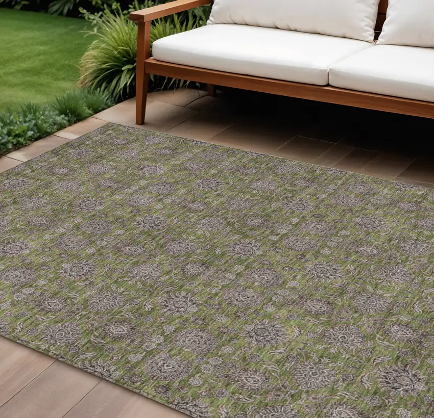 Add some artistry to your room with this 10-foot x 14-foot olive green beige and taupe floral washable indoor outdoor area rug. This rectangle shaped rug features a floral design that will work well both indoors or out. A classic shape marries with good looking design for your living room, hall, bedroom, porch, patio, or poolside. Ideal for outdoor spaces or high traffic areas with kids and pets, this rug is made from heavy duty polyester that is stain resistant to help repel water, dirt, and stains. Versatile in use, durable, and easy to maintain, this rug is an ideal solution to add a decorative and inviting touch to your indoor or outdoor space. 120-inch h x 168-inch w x 0.19-inch d.