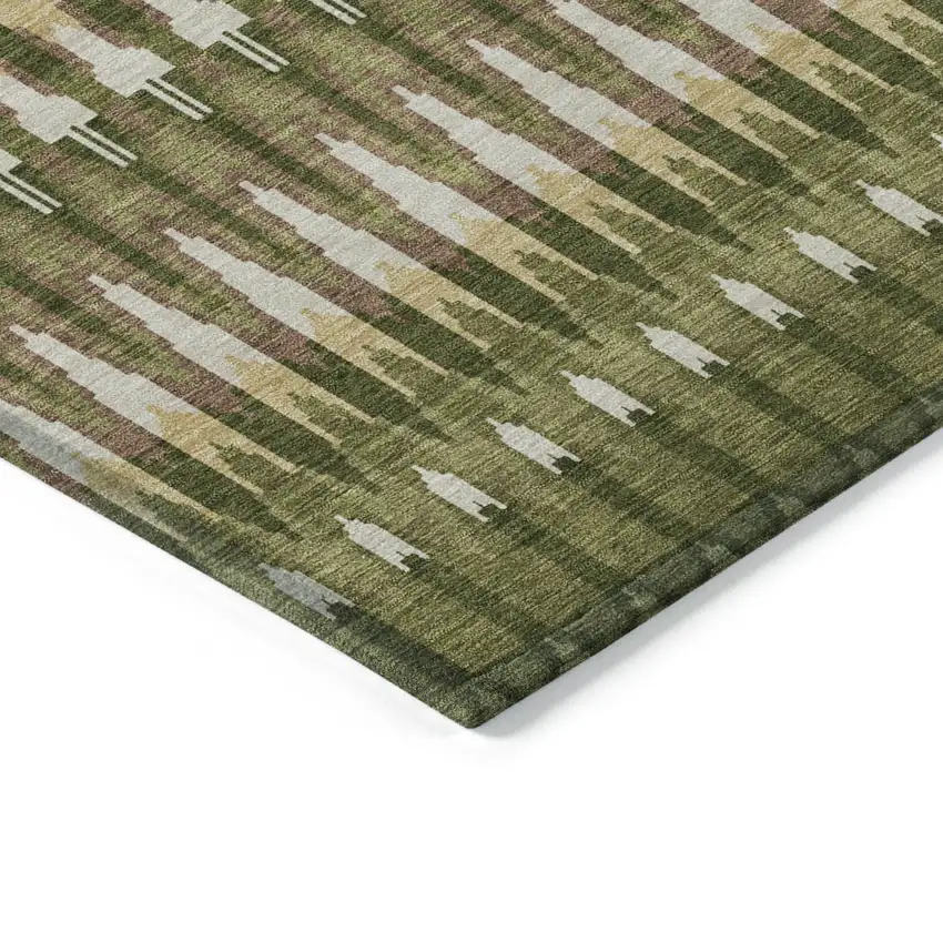 Add great coloration and comfortable texture to your space with this 10-foot x 14-foot olive green brown and gold southwestern washable indoor outdoor area rug. This rectangle shaped rug features a southwestern design that will work well both indoors or out. A classic shape marries with good looking design for your living room, hall, bedroom, porch, patio, or poolside. Ideal for outdoor spaces or high traffic areas with kids and pets, this rug is made from heavy duty polyester that is stain resistant to help repel water, dirt, and stains. Versatile in use, durable, and easy to maintain, this rug is an ideal solution to add a decorative and inviting touch to your indoor or outdoor space. 120-inch h x 168-inch w x 0.19-inch d.