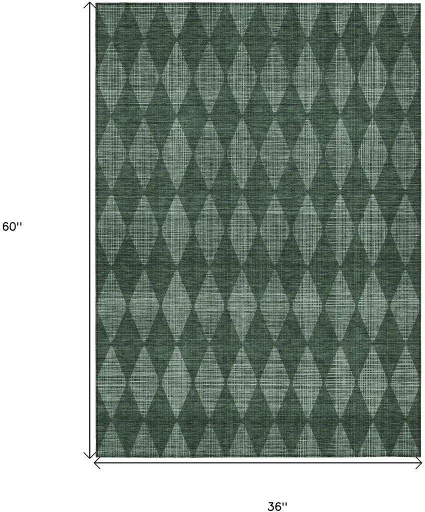Olive Green Geometric Washable Indoor Outdoor Area Rug
