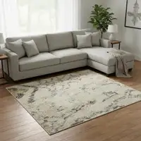 This 9-foot x 12-foot olive green gray and silver geometric washable area rug with uv protection, is a great way to add warmth to a room. Ideal for spaces with kids and pets, this rug is stain resistant to help repel dirt and spilled liquids. Built to last, this rug crafted from polyester fibers is known for its durability and long lasting appeal. Rugs are a great way to showcase your style, hide imperfections, warm your home and reduce noise. This larger sized, transitional styled rug is ready to create a focal point or statement piece in your room. 108.00-inch h x 144.00-inch w x 0.39-inch d.