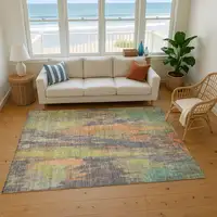 Add great coloration and comfortable texture to your space with this 3-foot x 5-foot olive green gray and silver striped washable area rug with uv protection. Ideal for spaces with kids and pets, this rug is stain resistant to help repel dirt and spilled liquids. Built to last, this rug crafted from polyester fibers is known for its durability and long lasting appeal. Rugs are a great way to showcase your style, hide imperfections, warm your home and reduce noise. This smaller sized, transitional styled rug is just what you need for your walkway, bedside, in front of door, cabinet, refrigerator, or chair. 36.00-inch h x 60.00-inch w x 0.39-inch d.