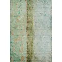 Olive Green Ivory And Gray Marble Washable Area Rug With UV Protection