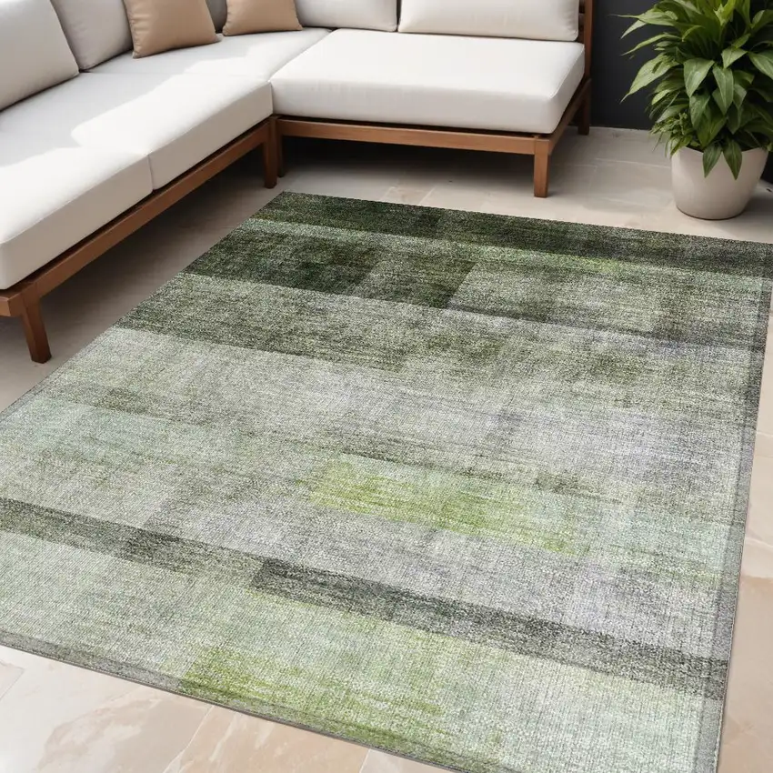 Olive Green Ombre Washable Non Skid Indoor Outdoor Area Rug