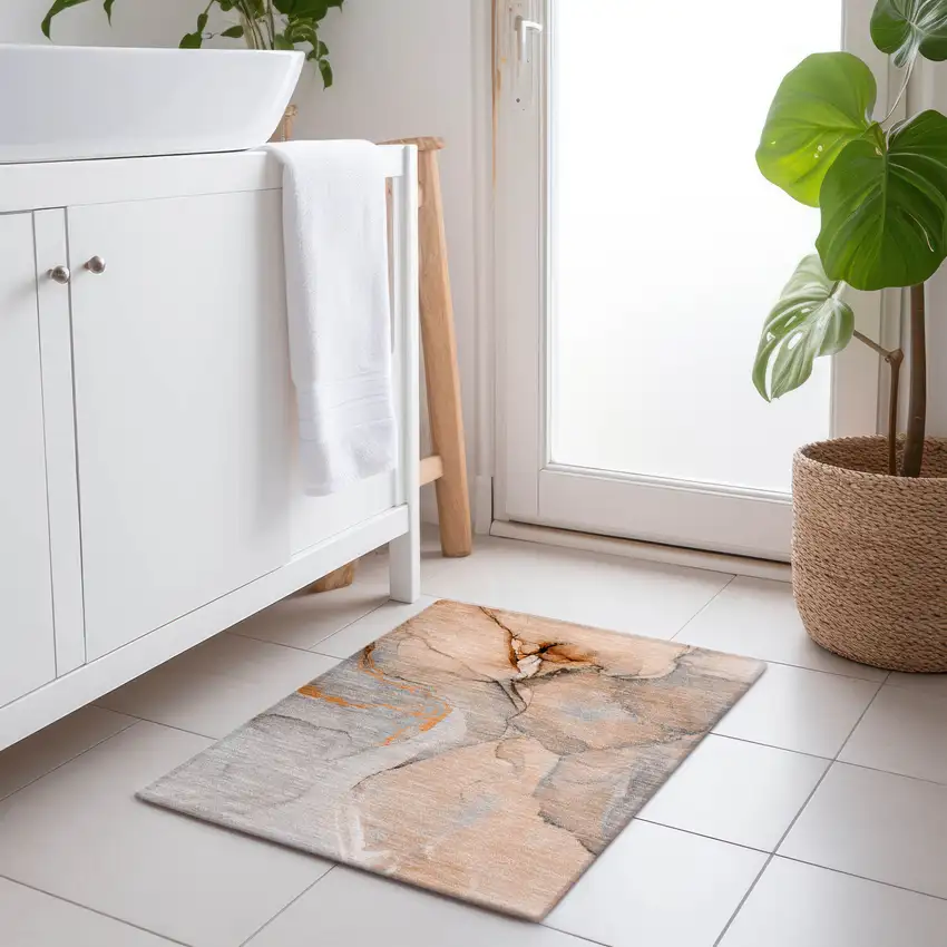 Orange Abstract Washable Non Skid Indoor Outdoor Area Rug