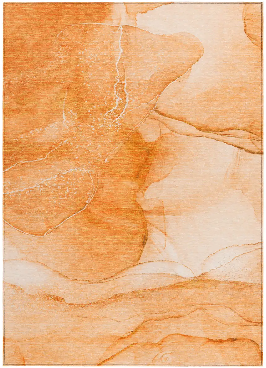 Orange Abstract Washable Non Skid Indoor Outdoor Area Rug