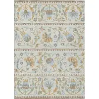 Orange And Gray Floral Medallion Washable Indoor Outdoor Area Rug