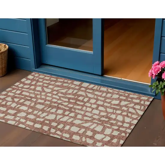 Orange And Ivory Abstract Washable Indoor Outdoor Area Rug