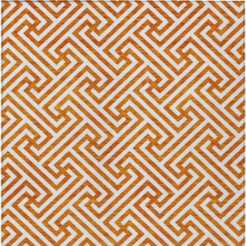 Orange And Ivory Geometric Washable Indoor Outdoor Area Rug